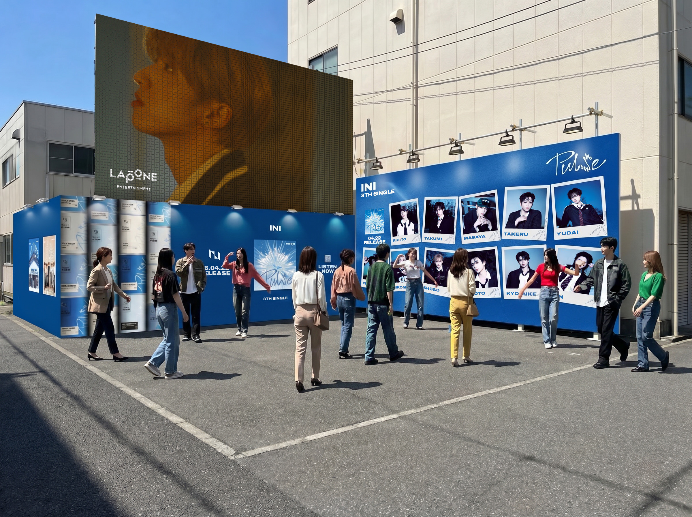 渋谷・原宿エリアで『PULSE』連動企画!フォトスポットやアドトラック「INI 'PULSE'号」が走行、TOWER RECORDSビジョンにINIが登場!